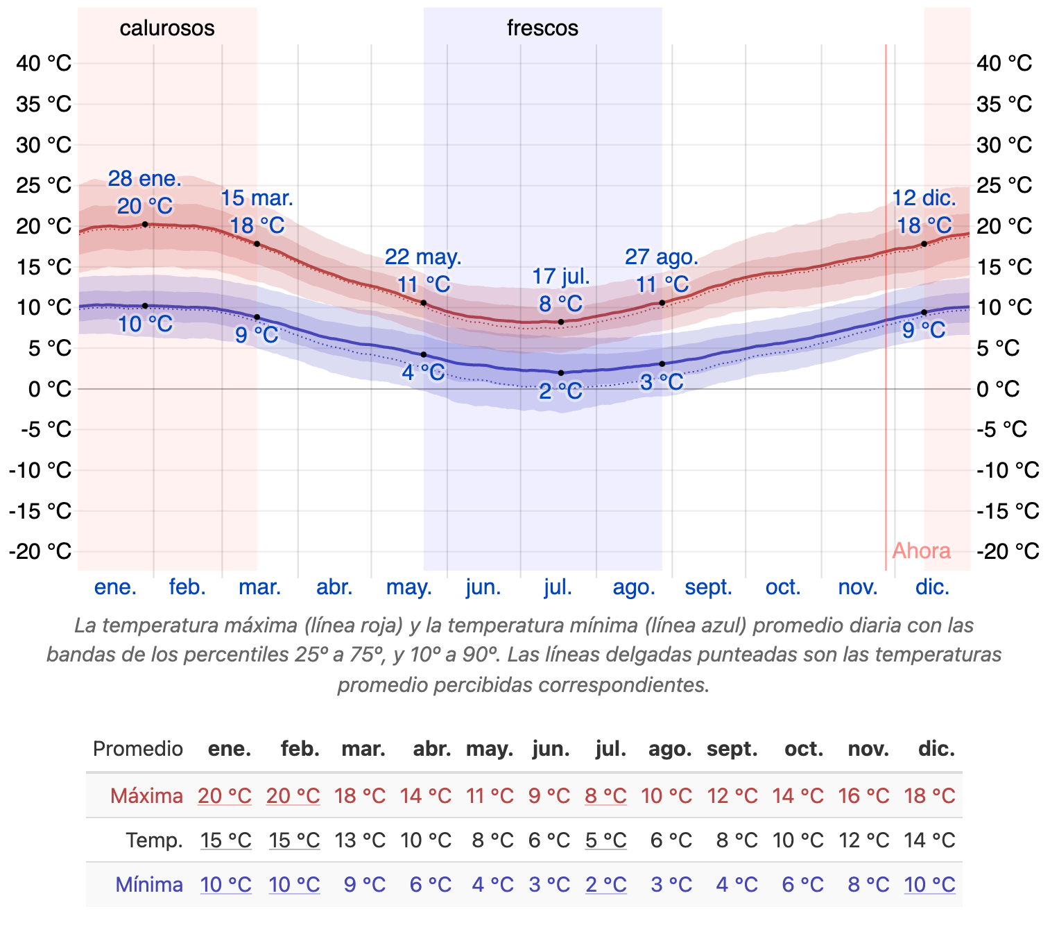Temperatura promedio en la ruta Villa Santa Lucía – Villa Vanguardia